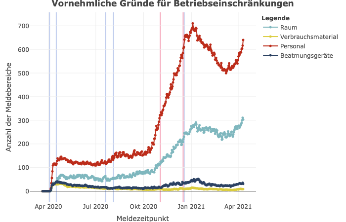 Wir haben seit Beginn der #Pandemie heute den Höhepunkt der Auslastung ALLER Intensivbetten erreicht (rote und gelbe Kurve Fig.1). Das Personal bricht weg (Fig.2). Selbst wenn es zu einem harten Lockdown kommt, steigen die Zahlen weiter für 10-14 Tage. Es muss JETZT was passieren