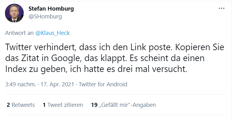 Wissenschaftsleugnung https://twitter.com/CorneliusRoemer/status/1383420926692184065