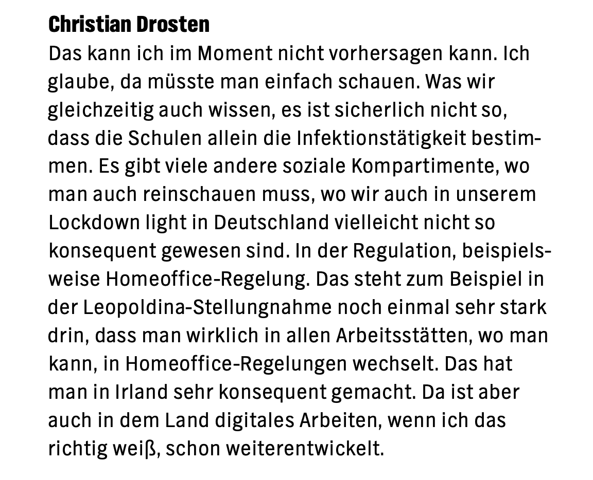 «Was inzwischen nicht mehr geht: so zu tun, als hätten Kinder ein magisches Schutzschild. Das hat man ja das ganze letzte Jahr hindurch immer wieder gehört: Kinder seien angeblich nicht infektiös. Gestimmt hat das von Anfang