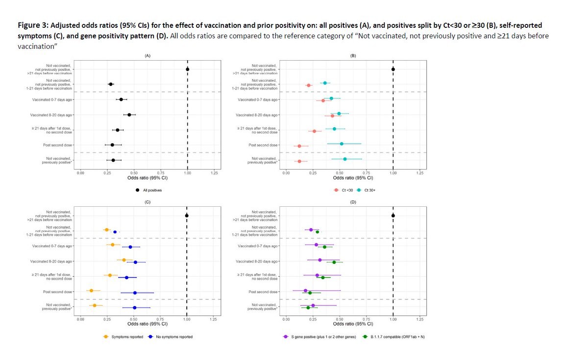 Geiles neues PrePrint bezüglich der Wirksamkeit von BioNTech (BT) und AstraZeneca (AZ) in UK. Kein Selektions-Bias, weil die >370.000 TeilnehmerInnen regelmäßig PCR Tests machten, unabhängig von Symptomen. https://www.medrxiv.org/content/10.1101/2021.04.22.21255913v1 (1/5)