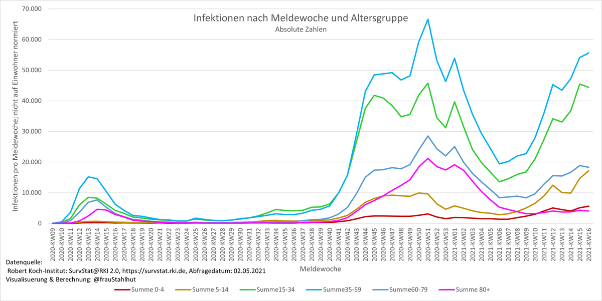 „Wir haben jetzt fast ausschließlich jüngere Patienten. Da stehen dann plötzlich Kinder aller Altersstufen an den Krankenbetten und nehmen Abschied. Und wir Ärzte wissen, da sterben junge Menschen, die wären ohne diese Infektion noch am Leben.“ https://www.zeit.de/arbeit/2021-04/corona-patienten-intensivstation-aerzte-krankenpfleger-alltag