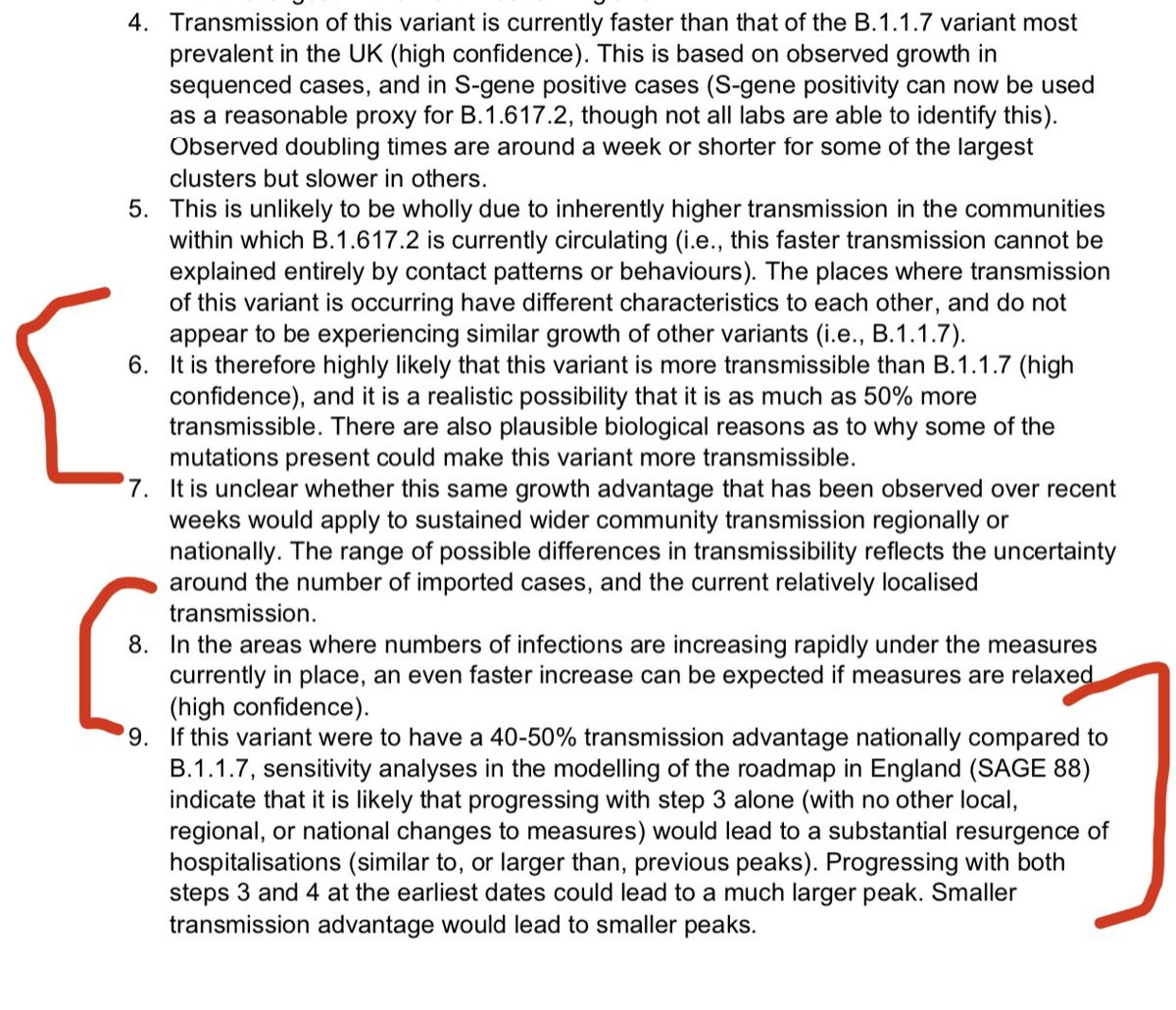 ⚠️FASTER TRANSMISSION warning from UK🇬🇧 govt of variant—“confident that B16172 is more transmissible than , & realistic possibility that could be 50% more transmissible & would lead to a substantial resurgence of hospitalisations.”🧵