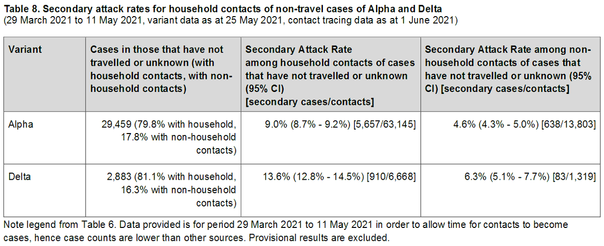 Uff, keine guten Nachrichten im neuen @PHE_uk Variantenreport: Delta (aka B.1.617.2/Indien) scheint erhöhte Hospitalisierungsrate zu haben gegenüber B.1.1.7 (Alpha) um Faktor 2,5 (zwischen 1,5-4).