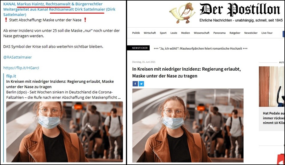 Beide fallen auf einen Artikel vom fantastischen @Der_Postillon herein. https://twitter.com/AZeckenbiss/status/1405129690696851461