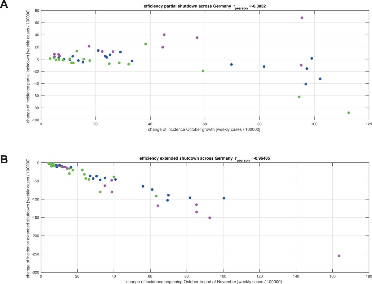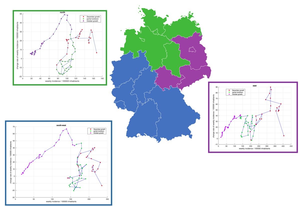 Welchen Einfluss hatten die #COVID19 #LockDown Maßnahmen in der zweiten Welle? Eine Analyse mit großen regionalen Unterschieden. Durch den partiellen Lockdown wurde aus exponentiellem Wachstum ein lineares. Reduktion erst durch den vollständigen.