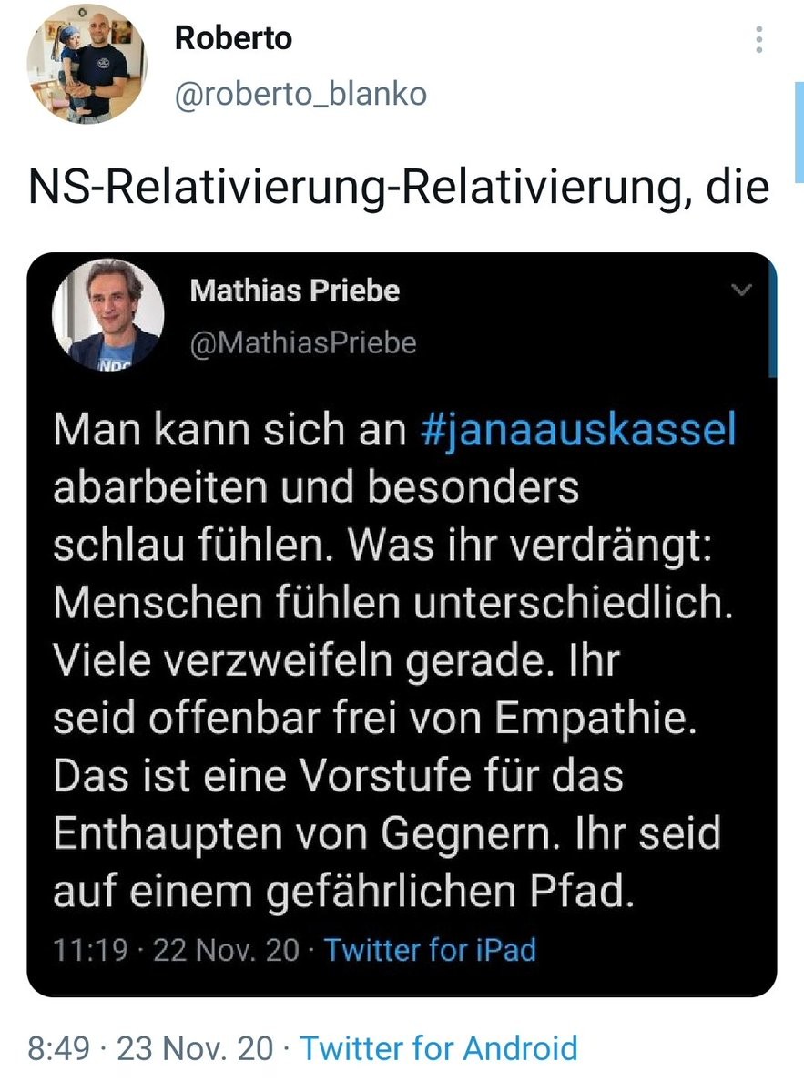 By the way ist der Typ ein klassischer Covidiot der auch vor NS-Relativierungen keinen Halt macht.