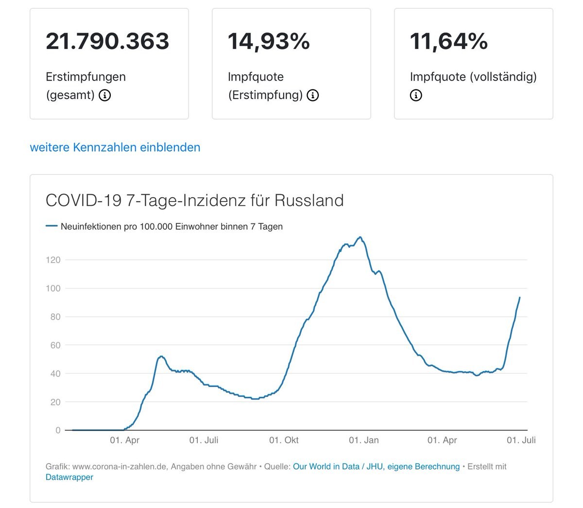Russland hat mit Sputnik V einen hervorragenden Impfstoff. Ungarn war mit diesem Impfstoff sogar noch erfolgreicher als UK.