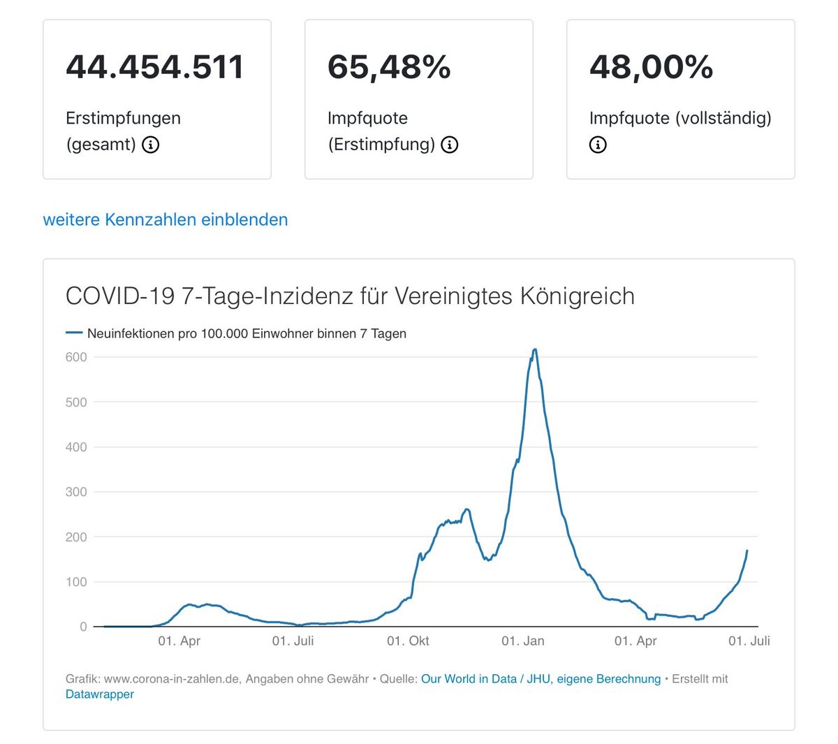 Es geht um die komplizierte Aussage, dass in UK mehr als die Hälfte der Delta-Toten ungeimpft sei.