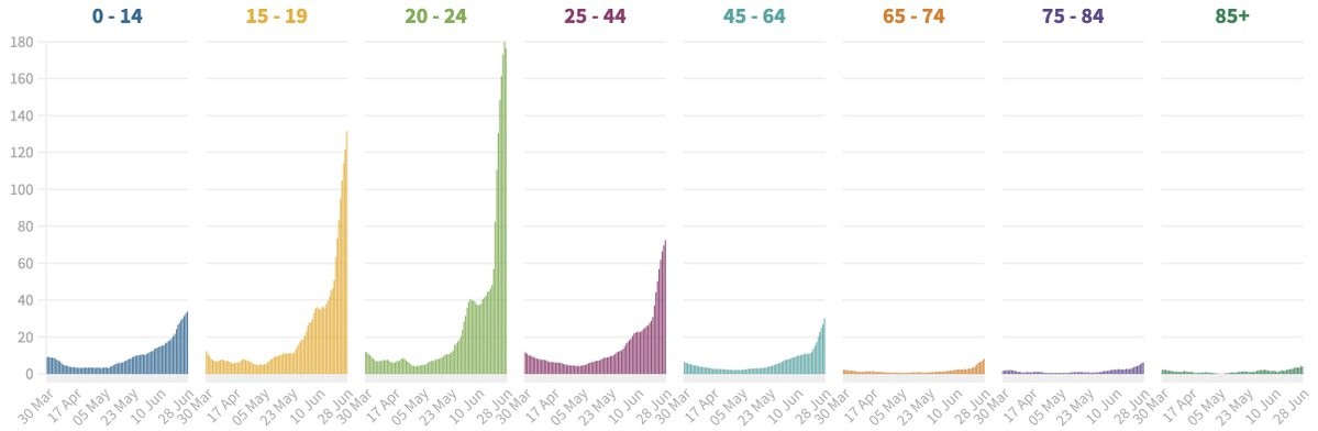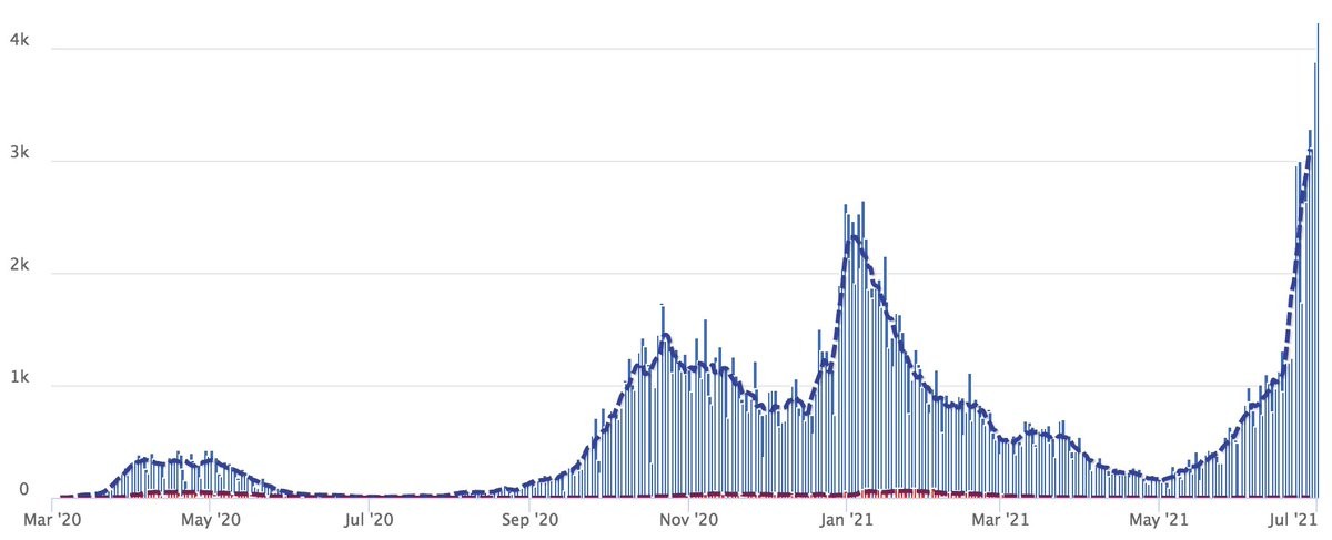 Soviel zum Thema das Virus sei saisonal, die Zahlen gingen im Sommer von alleine zurück und Impfungen würden nix bringen.