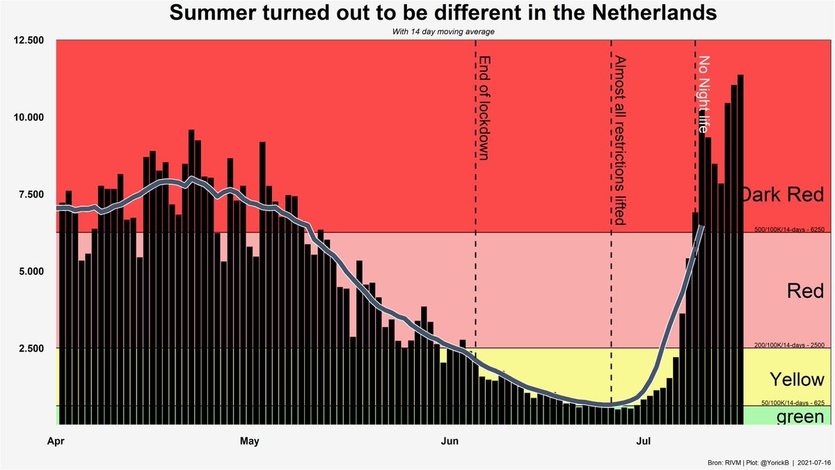 🧵The Netherlands🇳🇱 discovered that opening up all INDOOR night life (clubs and bars), with NO social distancing, NO mask use, and only a rapid-antigen-test that could be administered up-to 40 hours before entrance; was a very good way to create Delta Super Spreader events.
