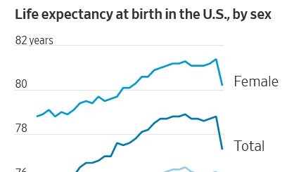 Die Lebenserwartung ist 2020 in den USA um 1,5 Jahre (!) gefallen; zum Großteil bedingt durch COVID-19.