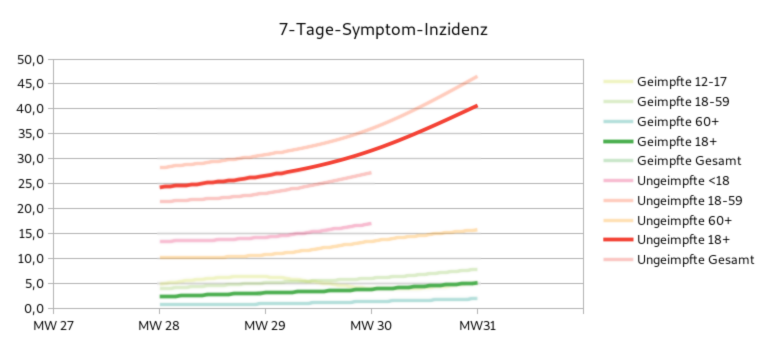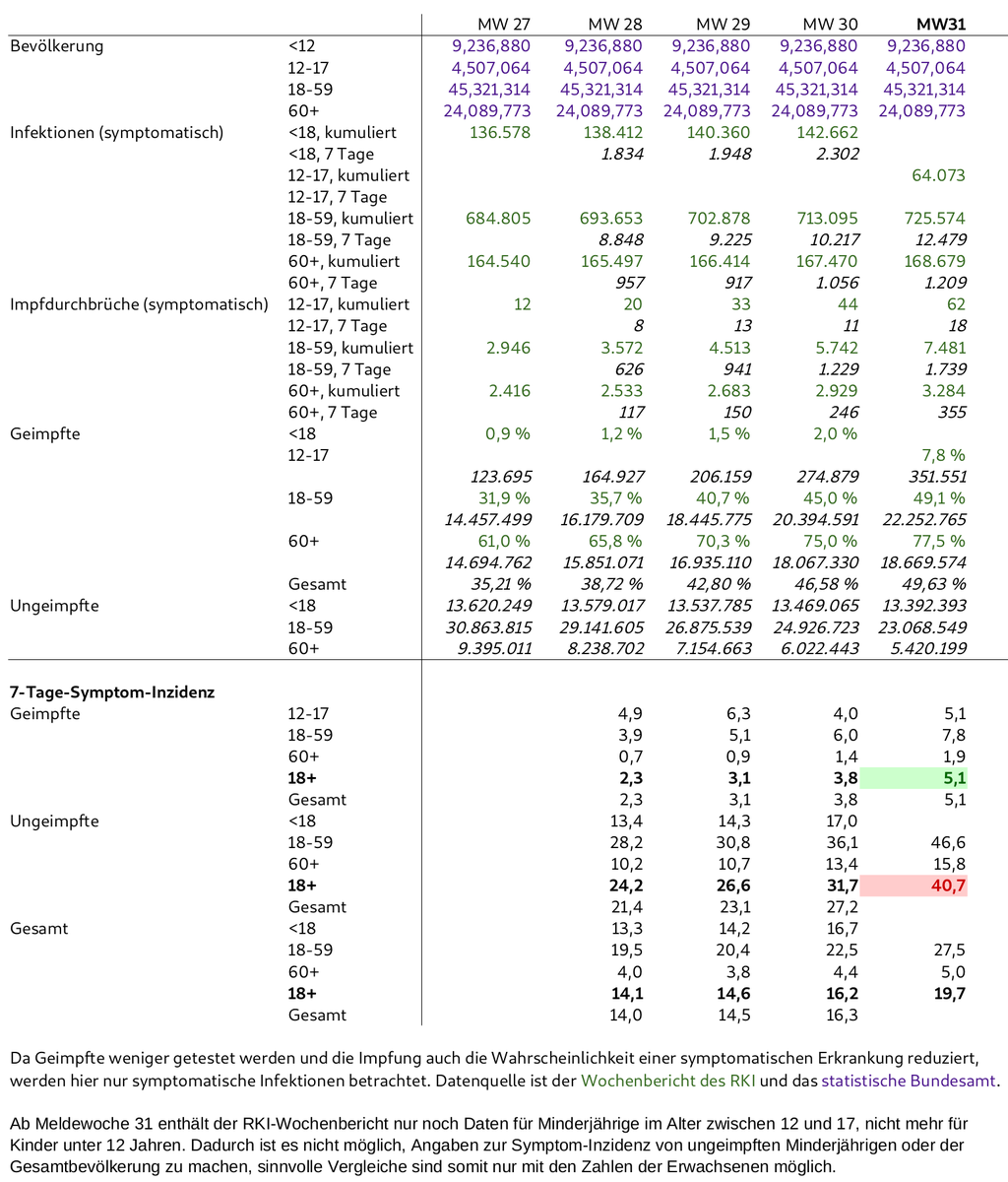 Beginnen wir den heutigen #Corona-Thread mit einem Anstieg der gut ist: Der #Impfeffizenz-Faktor ist von 7,1 auf 8,1 gestiegen. Geimpfte erkranken also 8,1 seltener an #Covid19 sind als Geimpfte. Die GIF-Grfaik zeigt zudem die Erkrankungs-Inzidenzen je Altersgruppe. [1/x]