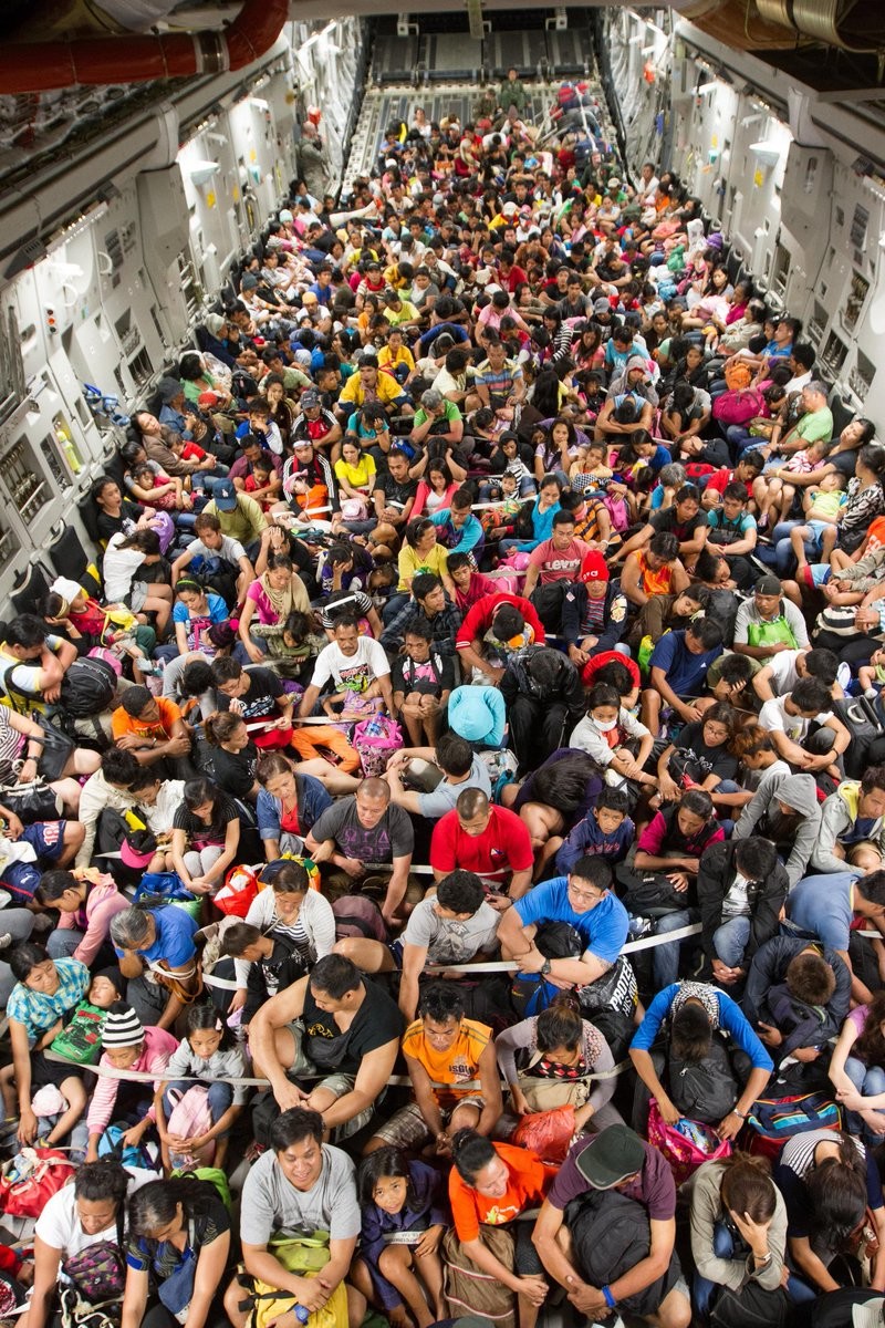 Below is an image of 670 Tacloban residents packed into a C-17 during typhoon haiyan relief. 800 seems like it could be done. twitter.com/IntelDoge/status/1