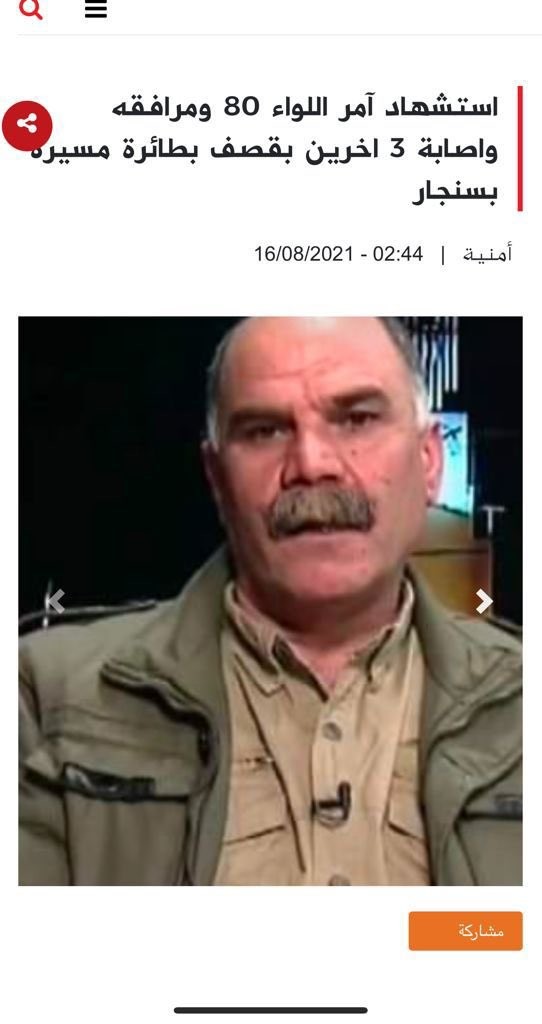 This is the Yazidi PMF commander assassinated by the Turks in Sinjar today. His wife and 5 daughters were killed by ISIS in 2014. He complained that he had lost the ability to cry.
