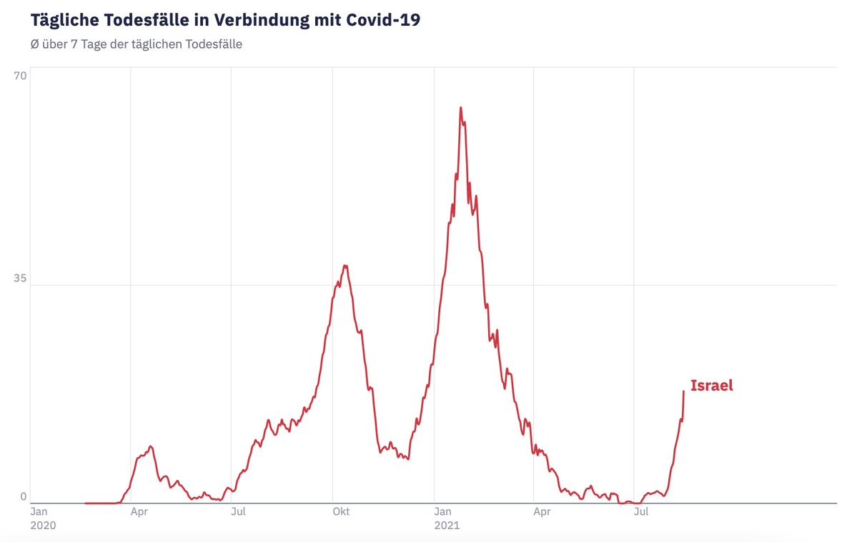 In Israel steigen nun auch die Covid-Toten extrem steil an. 70% davon sind vollständig geimpft. Mögen die mRNA-Vakzine noch so gut sein, sie ermöglichen uns keine Rückkehr zur Normalität. Es braucht neben dem Impfen weitere Anstrengungen.