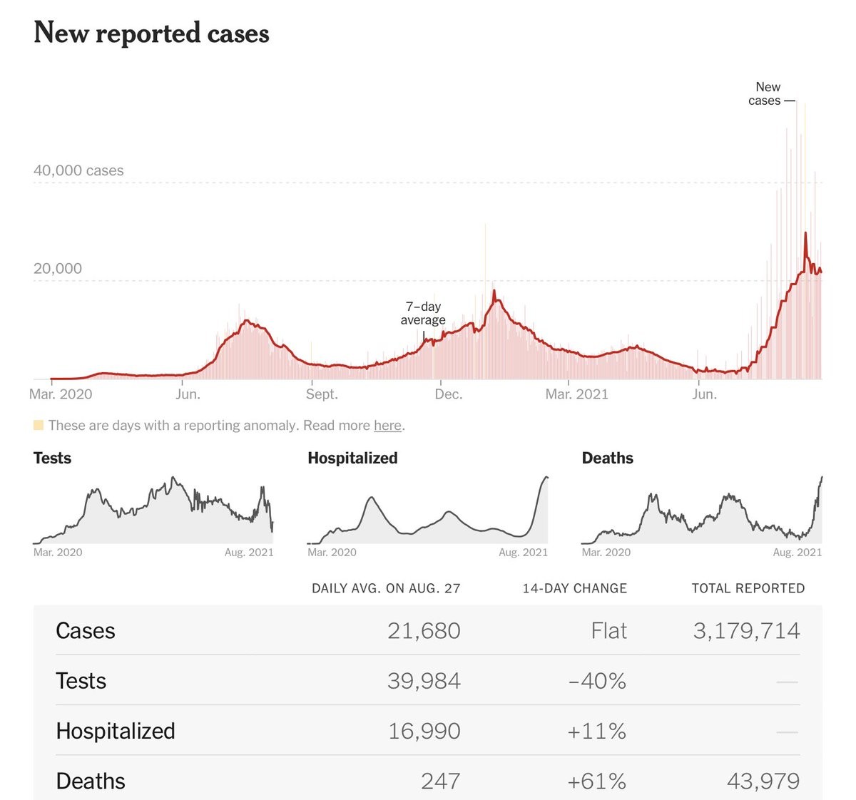 ⏺Avg daily new cases: 21,680 ➡️flat last 14 days