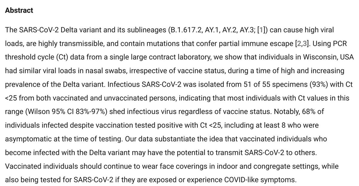 Im Fortgang meiner Suche nach Studien über die infizierter |r fand ich eine Studie von Juli 2021 aus Wisconsin (nicht peer reviewed), die mich ziemlich entmutigt.