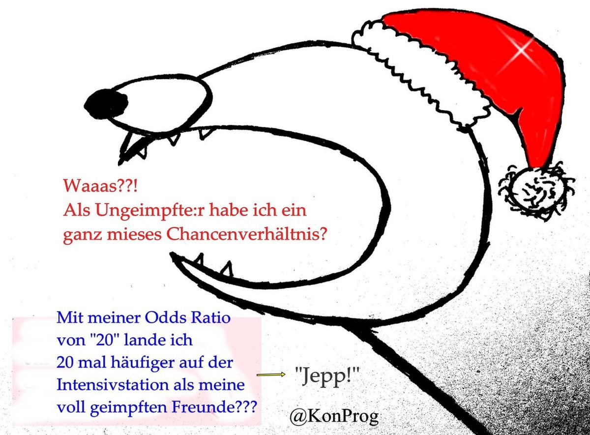 Beispiel: "Odds ratio 20 für Ungeimpfte vs Geimpfte, um auf der Intensivstation zu landen." 😱😱