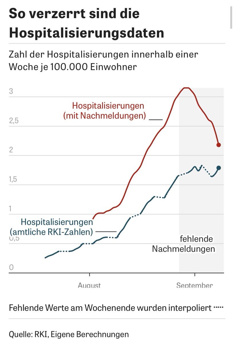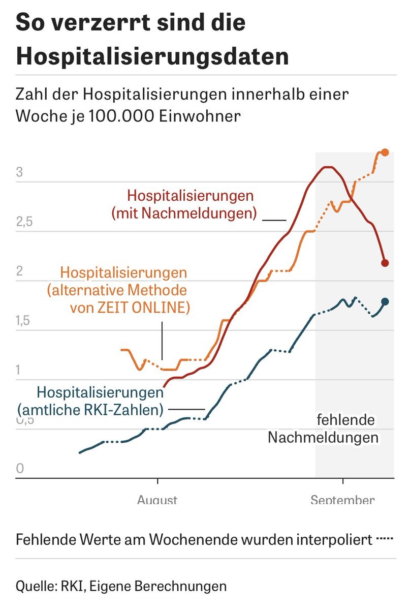 Die #Hospitalisierungsrate unterschätzt die aktuelle #Covid_19-Lage an den Kliniken systematisch, rechnen @elena_erdmann und @c_endt vor. Abweichungen von im Schnitt 79 Prozent! Wie soll so künftig rasch über die Pandemiebekämpfung entschieden werden? https://www.zeit.de/wissen/2021-09/corona-kliniken-ueberlastung-hospitalisierungsrate-rki