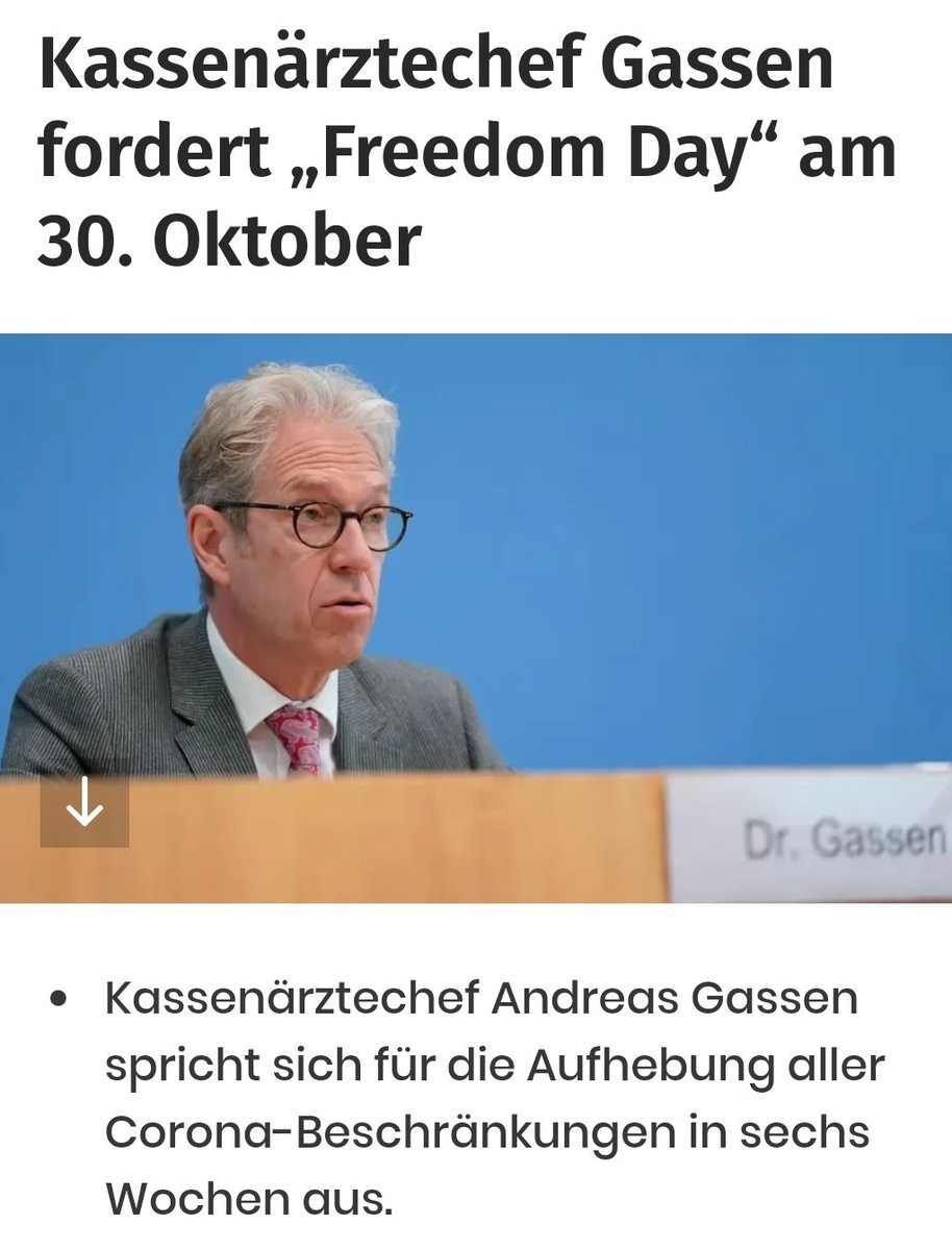 #Gassen Schon seine (nicht nur für einen Mediziner) beschämenden #Corona bzw. #Pandemie Statements im vergangenen Jahr waren ein Skandal + hätten zu seiner Entlassung führen müssen. Der Lobbyist mit Doktortitel war/ist eine Schande für die #KBV. #GassenEntlassen #FreedomDay #FDP