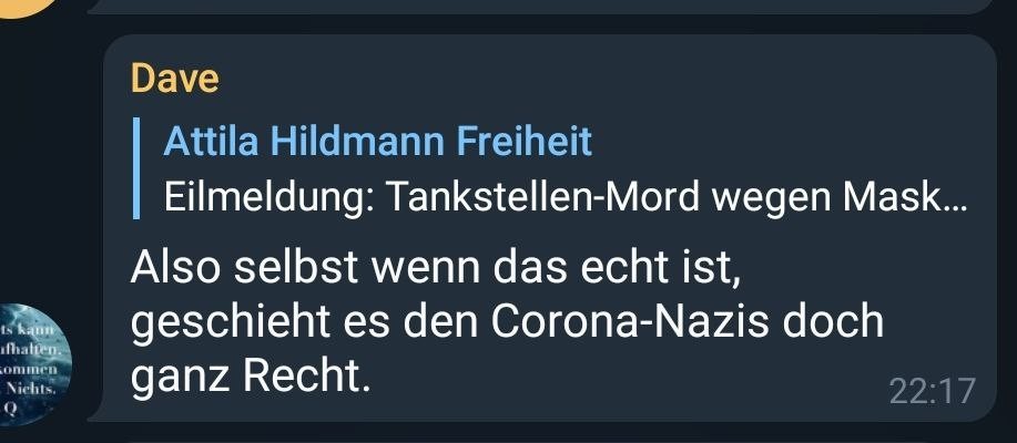 Wenn du gegen angebl. #MerkelMaulkorb & #CoronaDiktatur propagierst, Masken als lebensbedrohlich verteufelt, dann legt du den Grundstein für den feigen Mord.