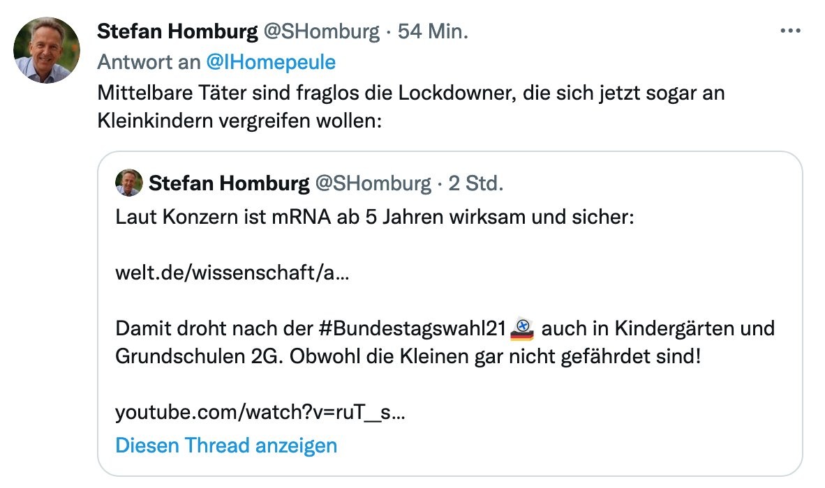 Nicht alle #Querdenker haben einen Mord begangen. Aber sie terrorisieren ihre Mitmenschen, provozieren KassiererInnen, ZugbegleiterInnen, LehrerInnen, PolizistInnen usw.
