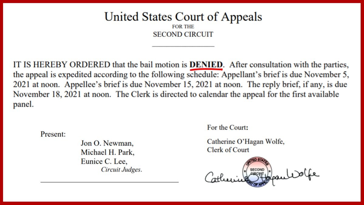 BREAKING: After 100 pages of legal briefing, the appellate court today denied my release in 10 words. This is not due process of law. Nor is it justice.