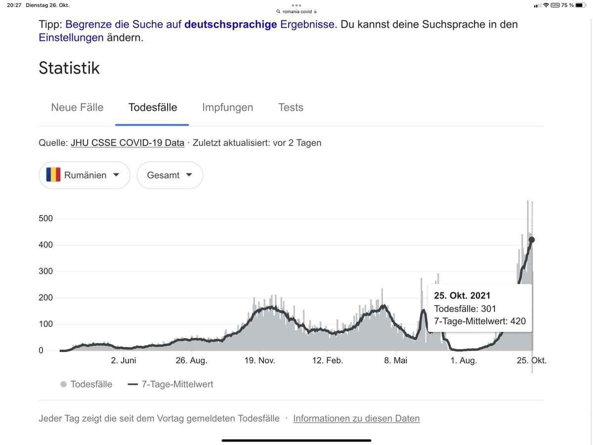Im Moment stirbt in Rumänien jeden Tag das Deutschland-Äquivalent von 1.700 Menschen an Covid. Das ist schlimmer als alles, was letzten Winter irgendwo in Europa ohne Impfung registriert wurde… 😳