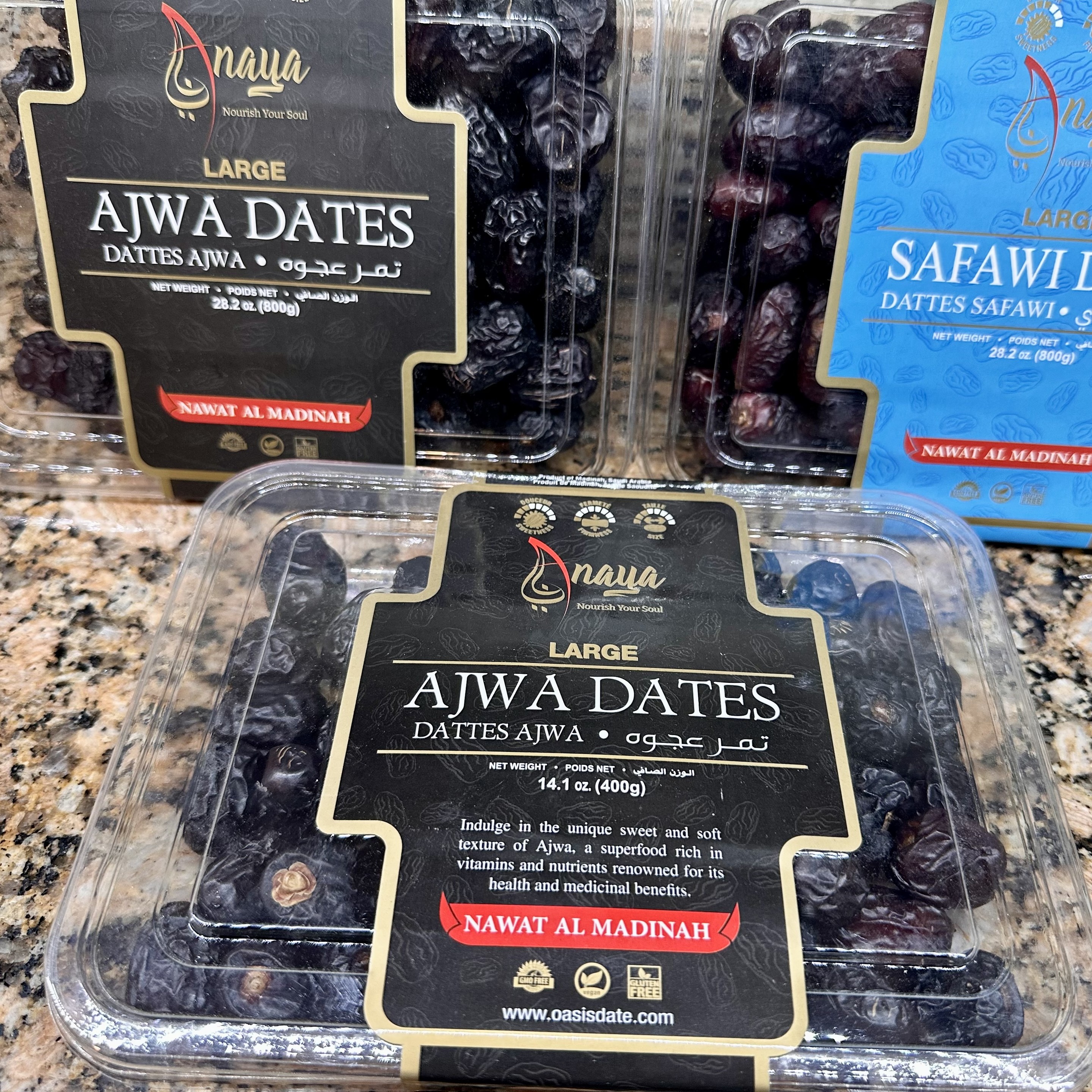 I got 2 kilograms of dates (we highly recommend these two specific types of dates. Any middle eastern store should have lots of options now for Ramadan)