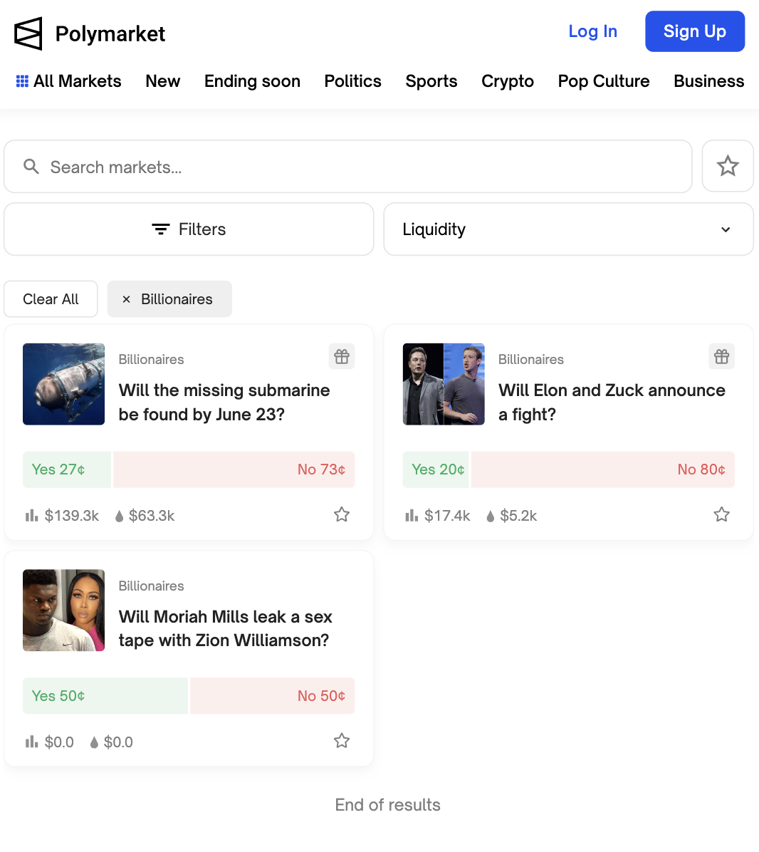 today i learned that crypto betting platform polymarket has a "billionaires" category