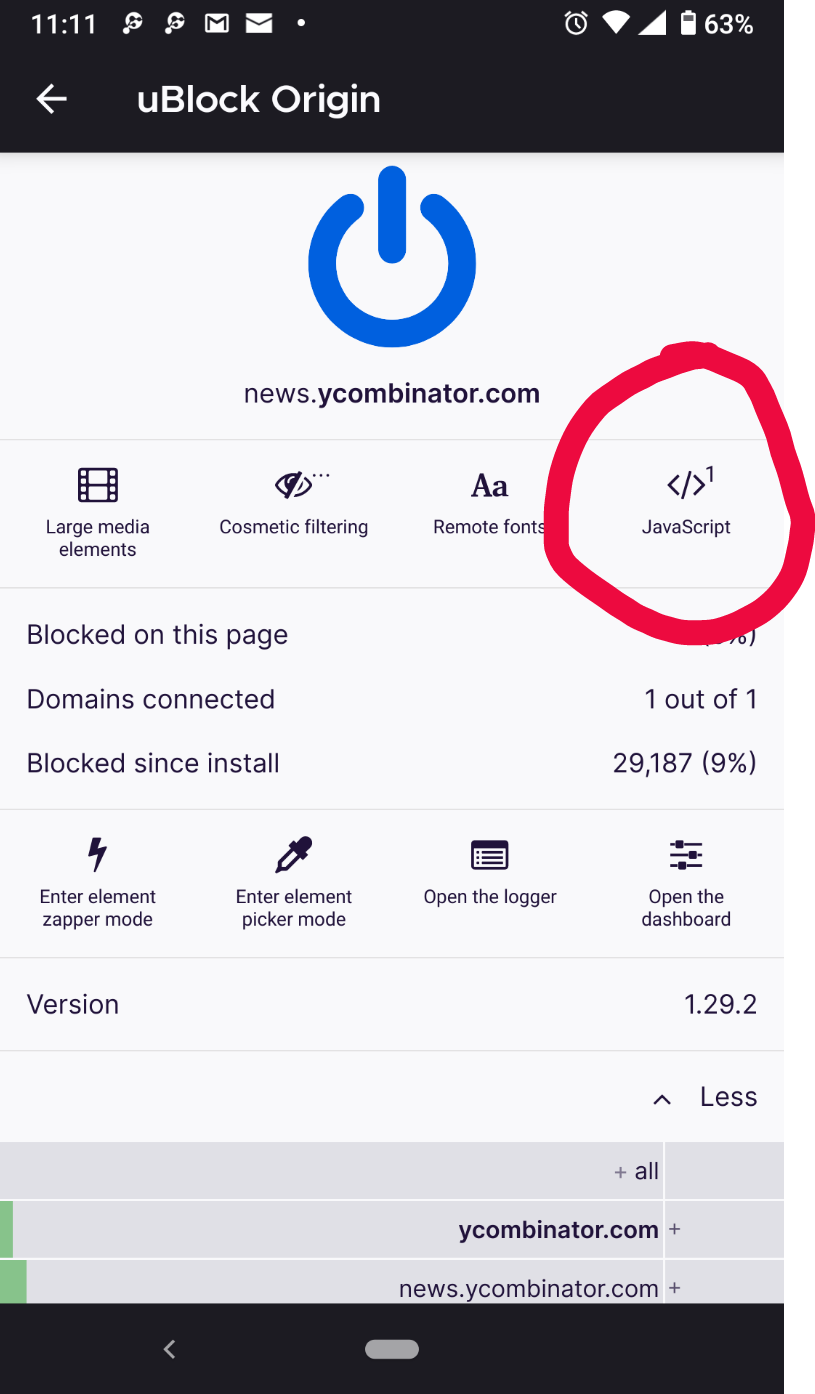 The process can vary a bit based on the browser you're using. Basically you click the ublock icon, click a JavaScript button, then refresh the page.