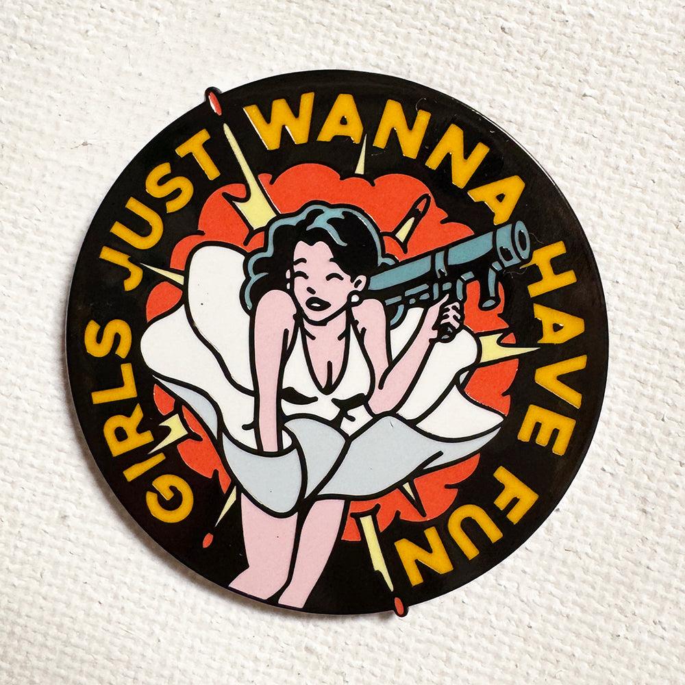 Today's Low Quality Ad is for this Girls Just Wanna Have Fun pin. Remember ladies, men used to tell you that you couldn't vote. That you couldn't go to college. That you couldn't own property. So never let a man tell you that you can't carry a fully loaded rocket launcher.
