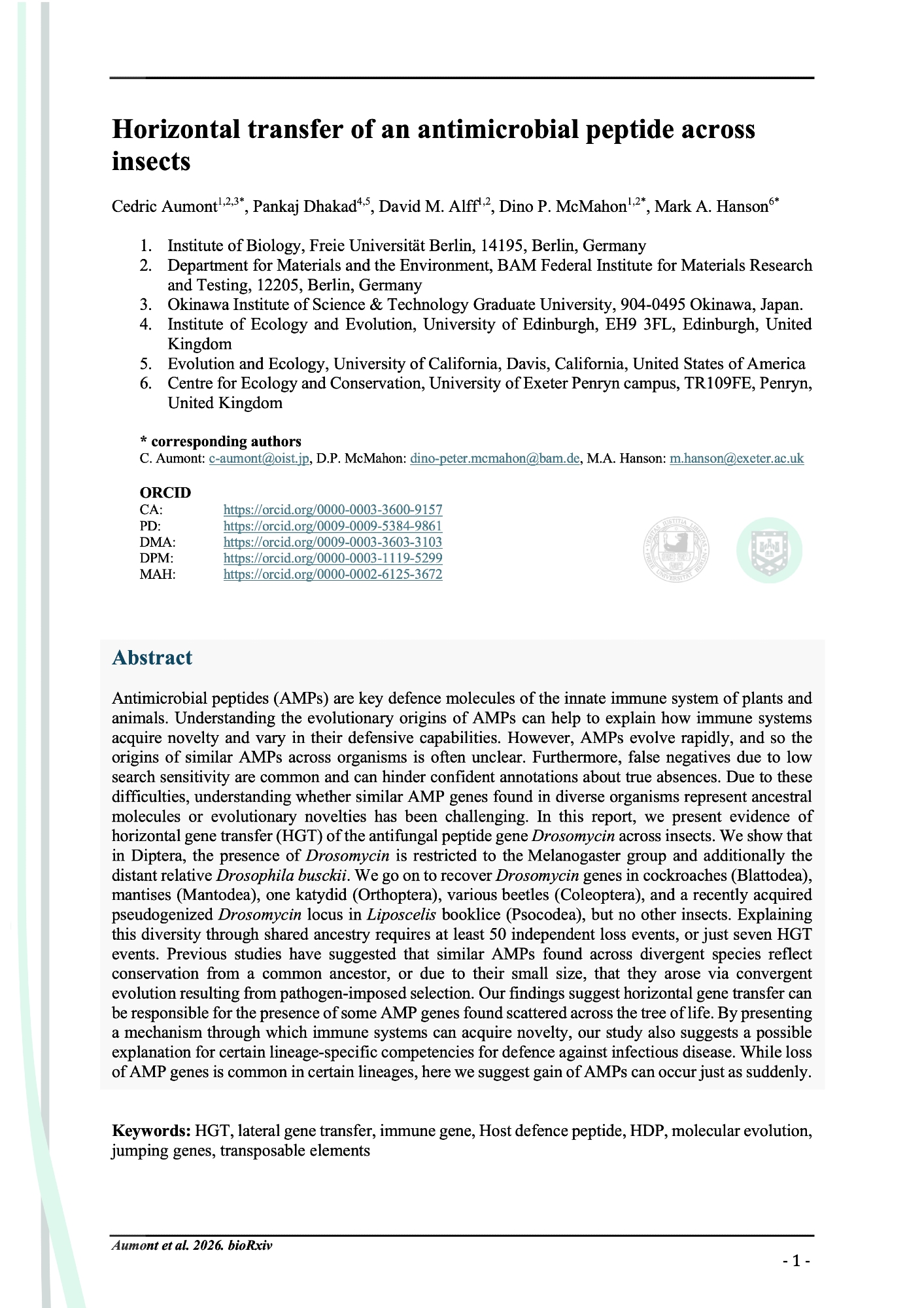 Pleased to finally share this fun collab that began at #Ento23 @cedricaumont.bsky.social@bsky.brid.gy presented & I had seen NCBI annotated some cockroach genomes as "contaminated." Turns out NCBI & I were wrong (much more fun). Horizontal transfer of an #AntimicrobialPeptide across insects bit.ly/DrsHGT 1/🧵