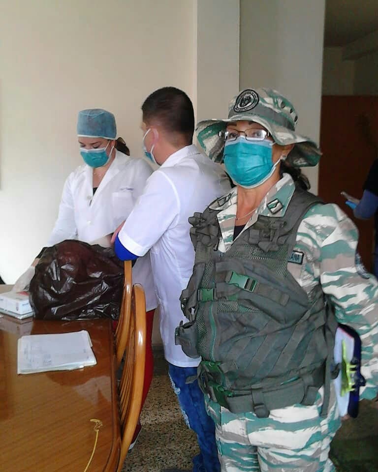 Recorrido de Médicos cubanos y venezolanos, con acompañamiento de la Milicia Boliviana a visita casa por casa de varías direcciones de la parroquia Baruta.