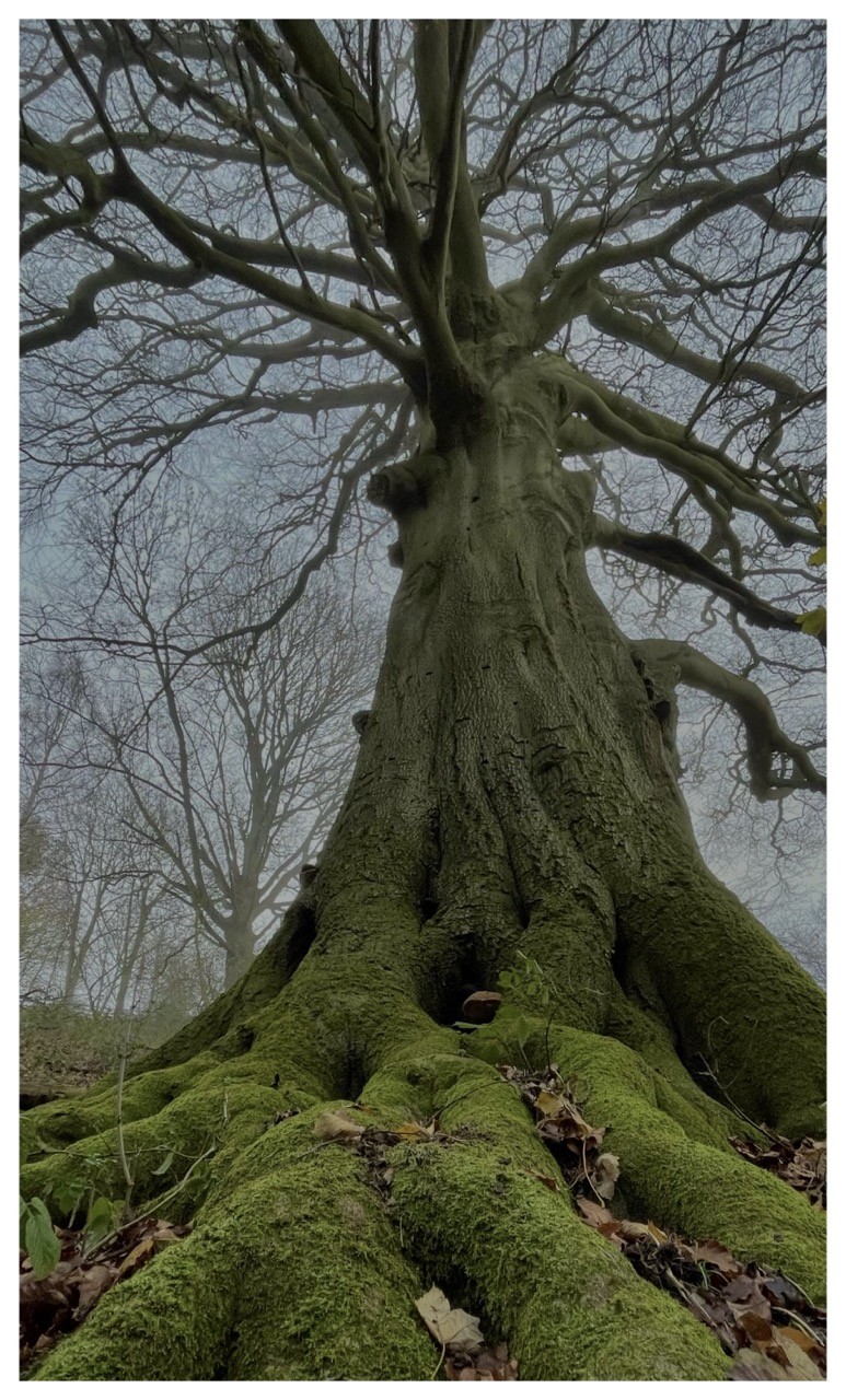 I paid a visit to my favourite Beech tree again today. It was misty and cold, but its roots stretched out towards me like a warm, welcoming hand, covered in a carpet of moss