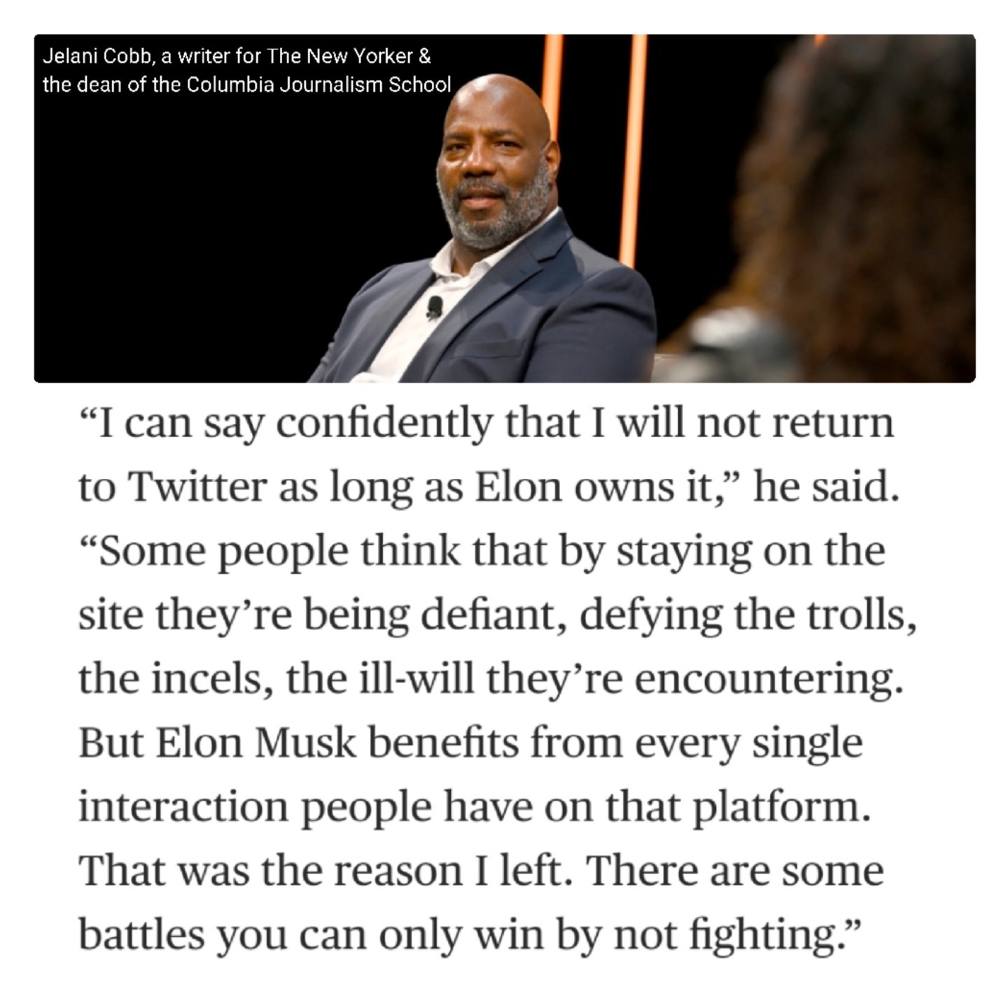 Yoel Roth, the former Head of Trust and Safety for Twitter, [shared his thoughts](https://www.cnn.com/2022/11/29/tech/yoel-roth-twitter-elon-musk) on Musk's handling of Twitter and the reasons for his departure while speaking at a Knight Foundation conference. He largely just confirms what we all know from following the debacle, though he does demonstrate a good practice for personal and professional life-- defining clear boundaries: