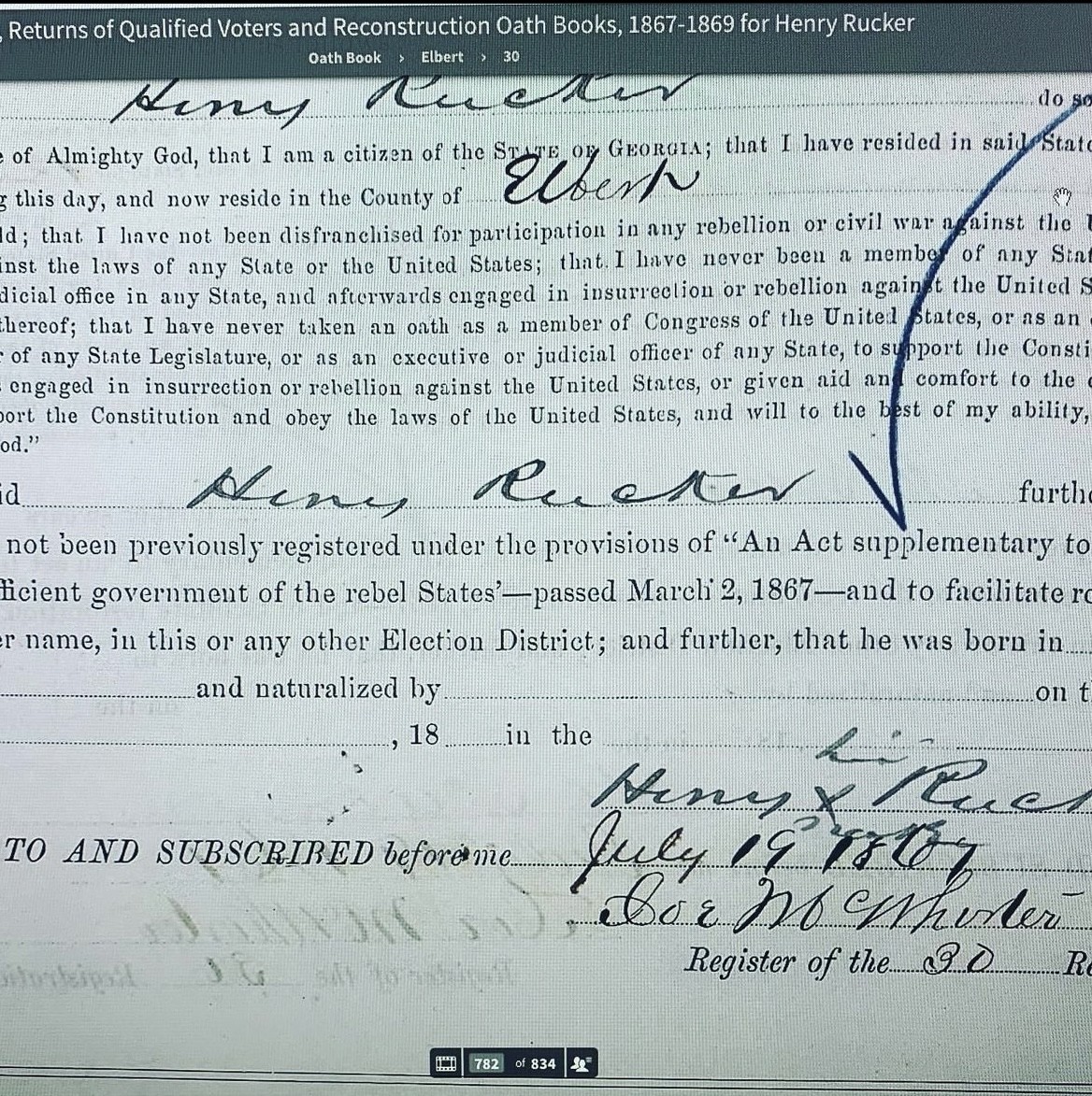 Voting isn’t everything but it’s something. This is the registration of my ancestor Henry in 1867 in Elbert, Georgia. We’ve come a mighty long way. Ain’t that good news? #BlackFolk