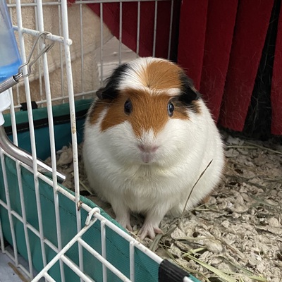 My husband is cleaning the guinea pig cage and one Miss Ester is bopping around causing trouble and chewing on things. He keeps saying “Ester! No!”