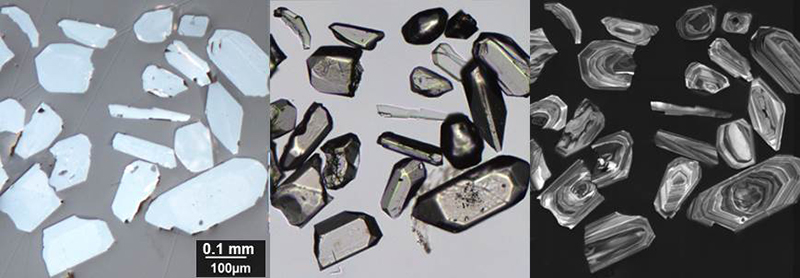 The attached images show what zircons look like when they are analysed, especially the figure on the right which reveals an amazing property of zircon. They can grow like trees with layer upon layer of new zircon being added. A zircon is so robust is that it can: