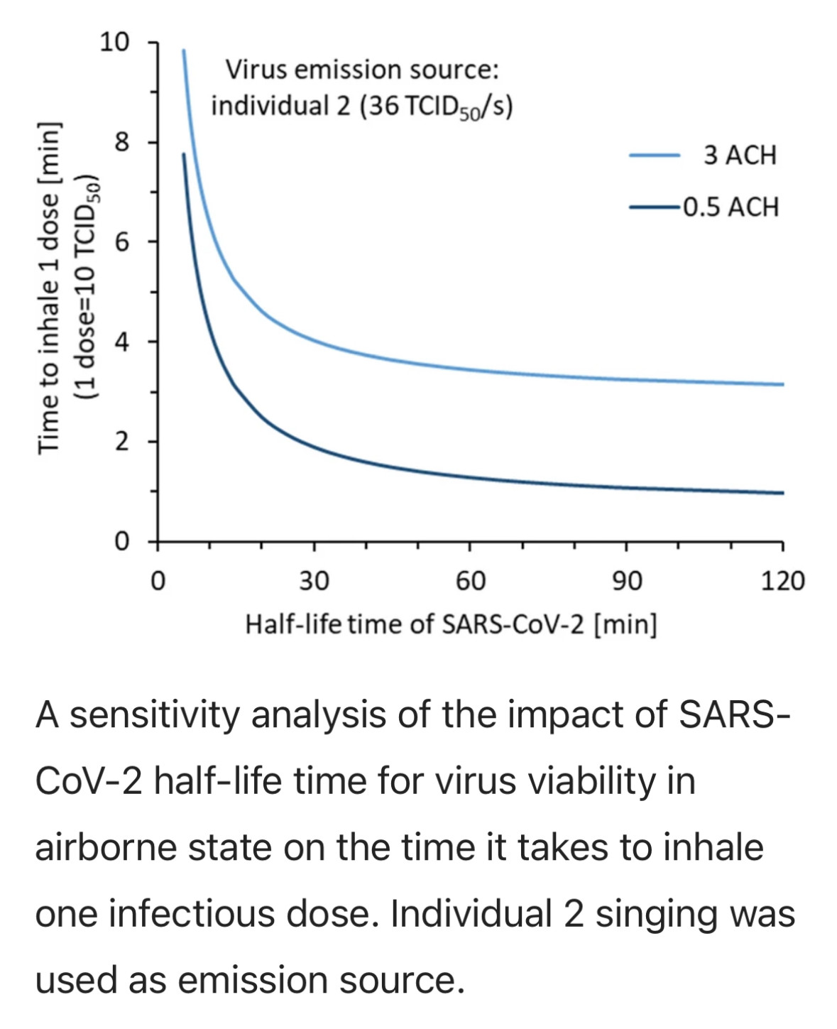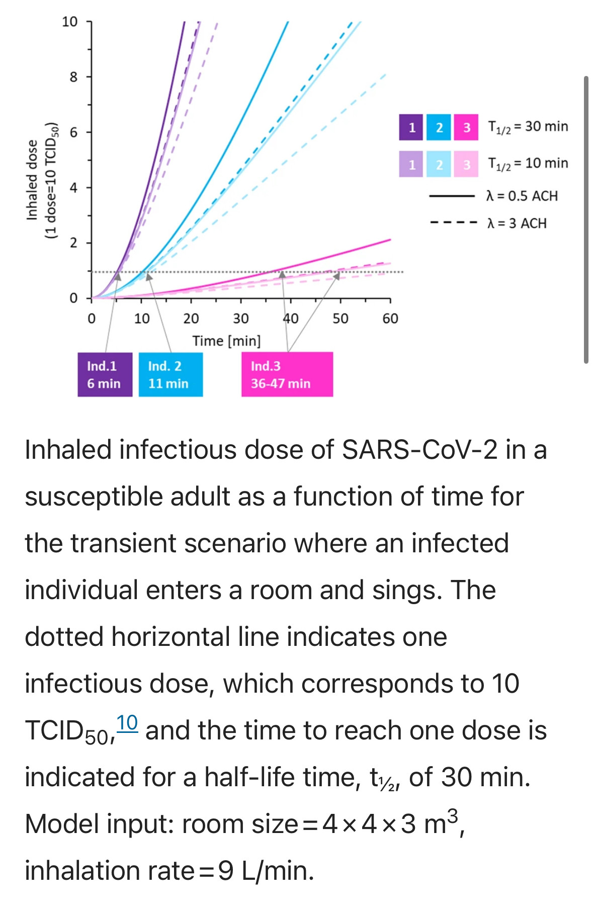 STUDY calculated “an indoor air model for calculating the time needed for a susceptible person to inhale one infectious dose when being in the same room as the infectious person. This time can be as short as 6 min when a highly infectious individual enters the room or only 1 min if the infected person already has been in the room long enough to reach steady-state concentration of viruses in the air.”