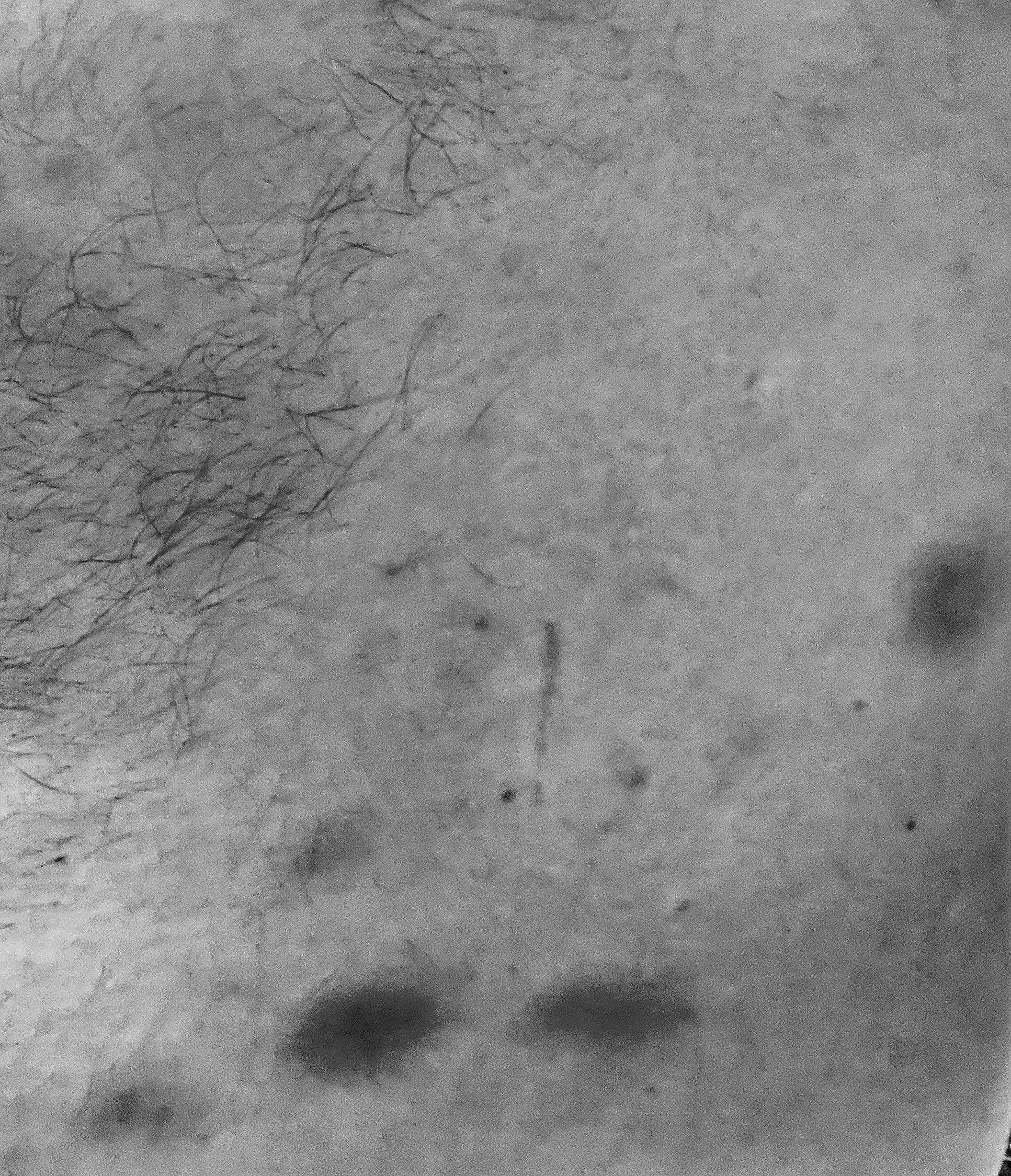 This is my side. The dark marks are bruises I made trying to release hard muscle fiber in my abdomen. Just my fingers.