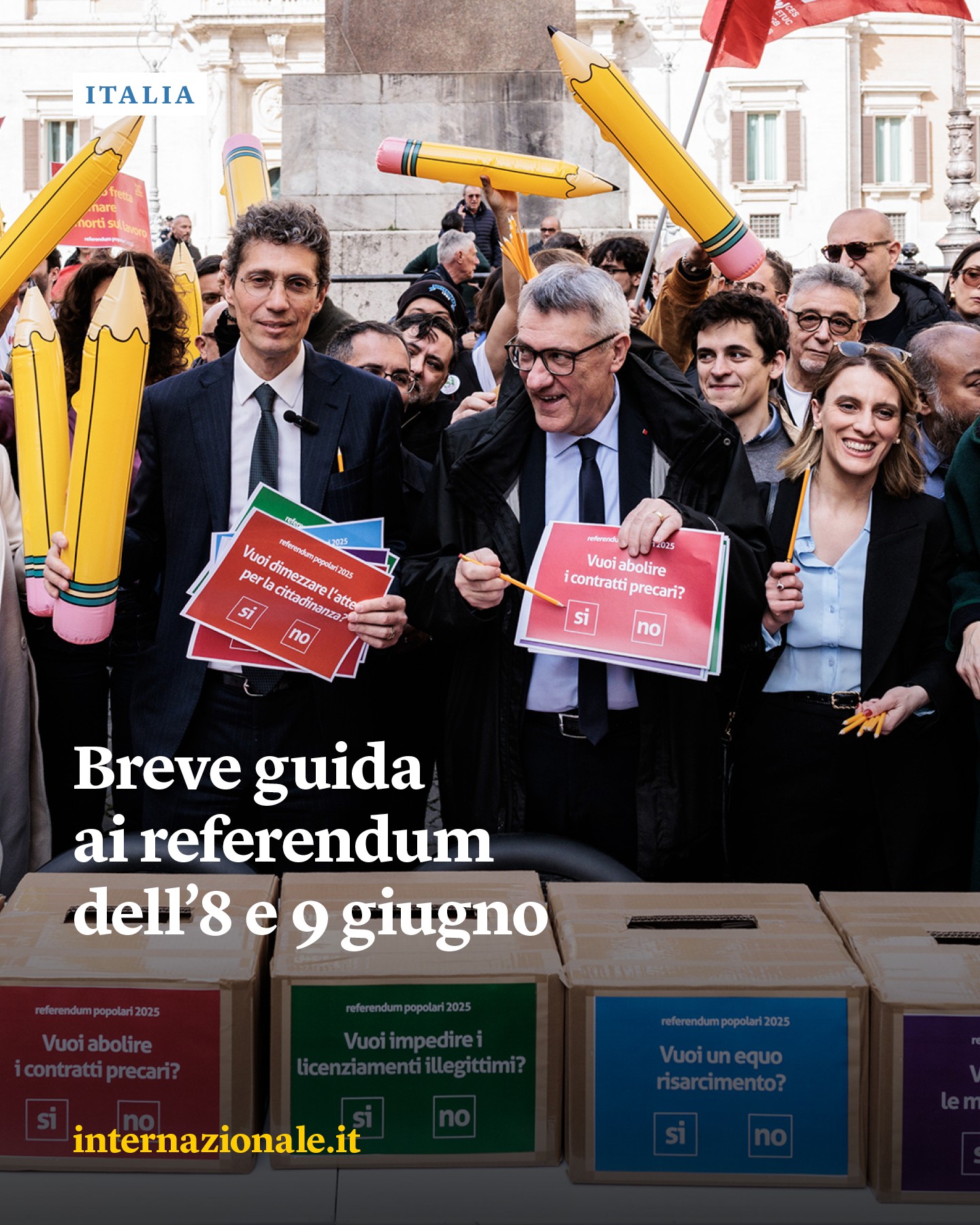 In Italia l’8 e il 9 giugno gli elettori sono chiamati alle urne per esprimersi su cinque referendum abrogativi: quattro riguardano il lavoro e uno la cittadinanza. Una breve guida: intern.az/1MJ7