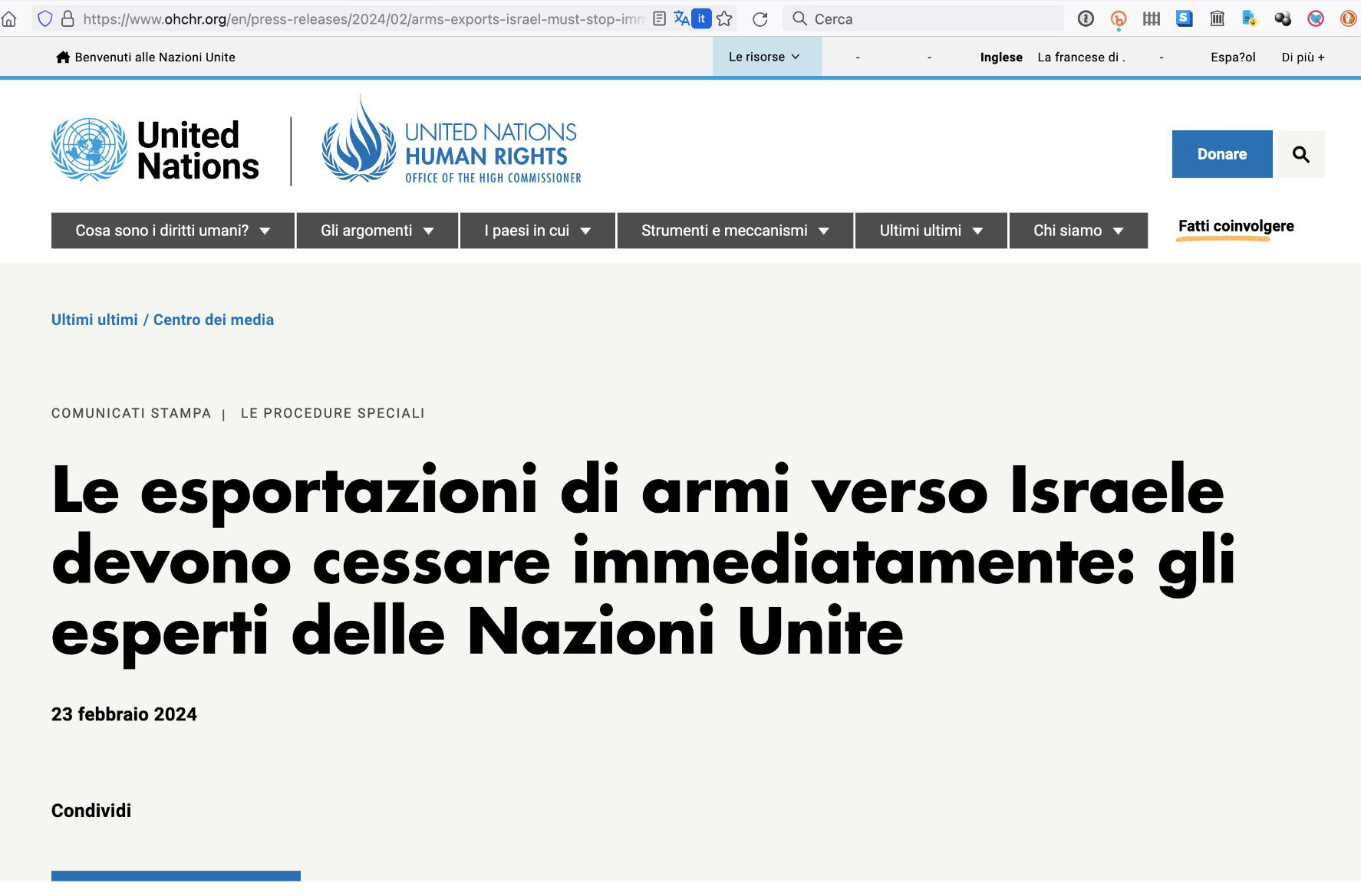 ⚠️ Le esportazioni di #armi verso #Israele 🇮🇱 devono cessare immediatamente: gli esperti #ONU [23feb2024]