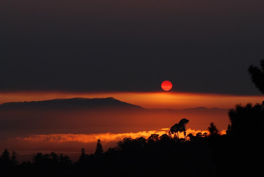 Going to a local photography club meetup tonight, where folks submit their work and others critique it. This is my submission for tonight- it was a day where distant wildfires created a smoke layer at about 3000 feet in the atmosphere, creating a cool filter for the sun as it was starting to set over Mt Tamalpais. Aug 9, 2018