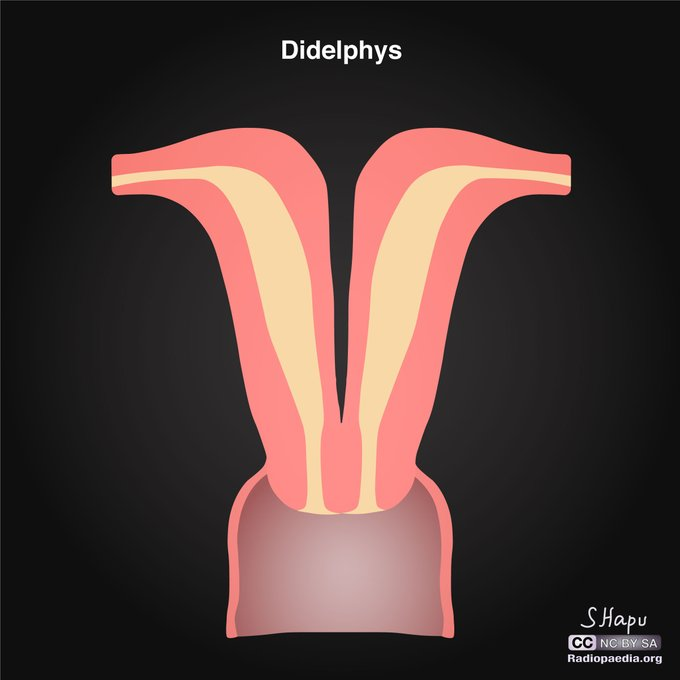 Symptoms of uterus didelphys if they're present include heavy or painful periods (because you're having two periods at once), bleeding that isn't stopped by a tampon (because it's only absorbing blood from one vagina and uterus), and pain during sex. In terms of pregnancy, recurrent miscarriages, pre-term birth and the baby being in the breech position are more likely.