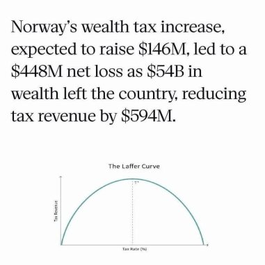 This is an **economics-themed meme**, which *claims* that Norway’s wealth-tax increase caused a net loss in government revenue.