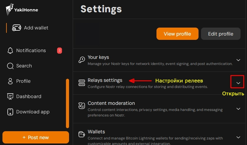 Тем же опытным путём выбран наиболее устраивающий меня клиент: YakiHonne, в двух вариациях: web-клиента, т.е. браузерной версии для компа, и версия под Android (в мобиле). Данный клиент вполне (пока) дружелюбен к достаточно старому железу, что для многих является немаловажным фактором. Как и где вписывать и переключать релеи в Настройках и т.д. можно увидеть на скринах из клиента Yaki. Порядок расположения релеев роли не играет.