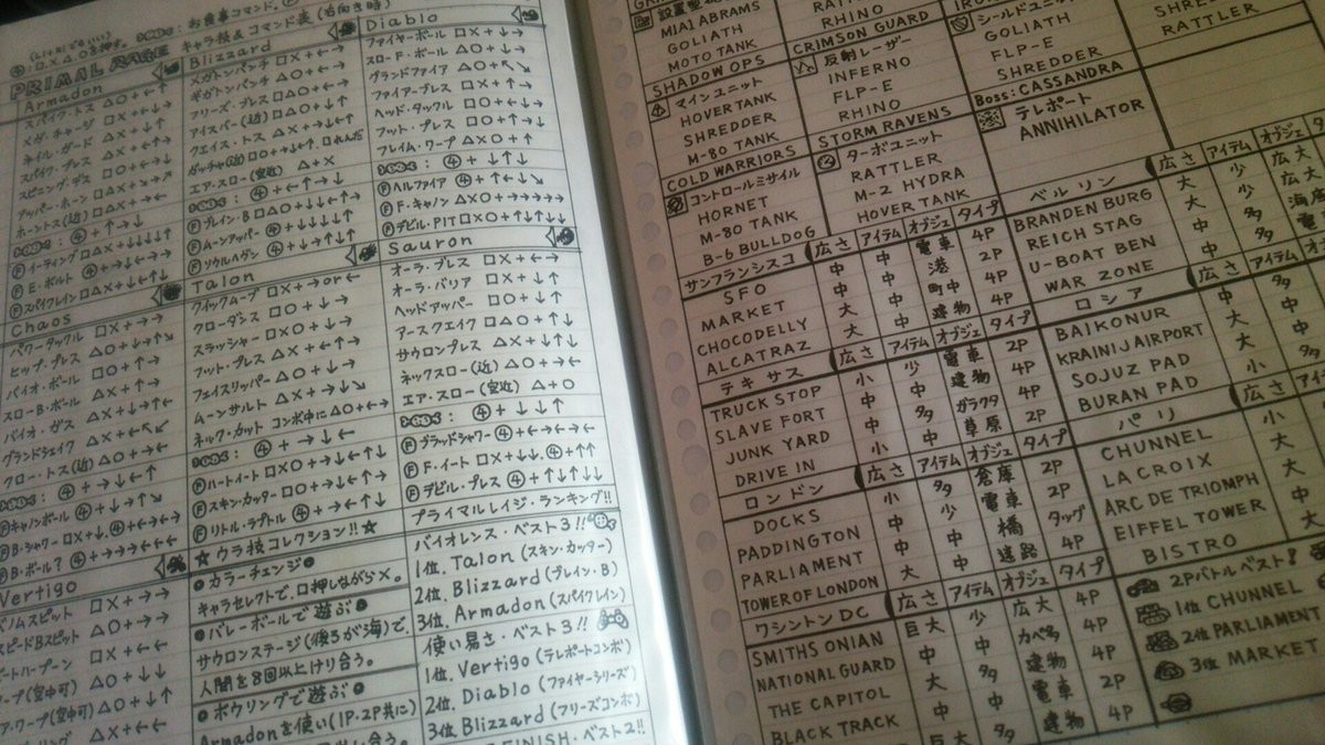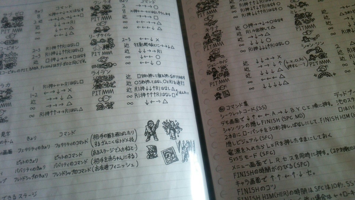 RT @oekaki55baraka昔ヨウゲーにハマっていた頃、手書きで書いていたコマンド表。