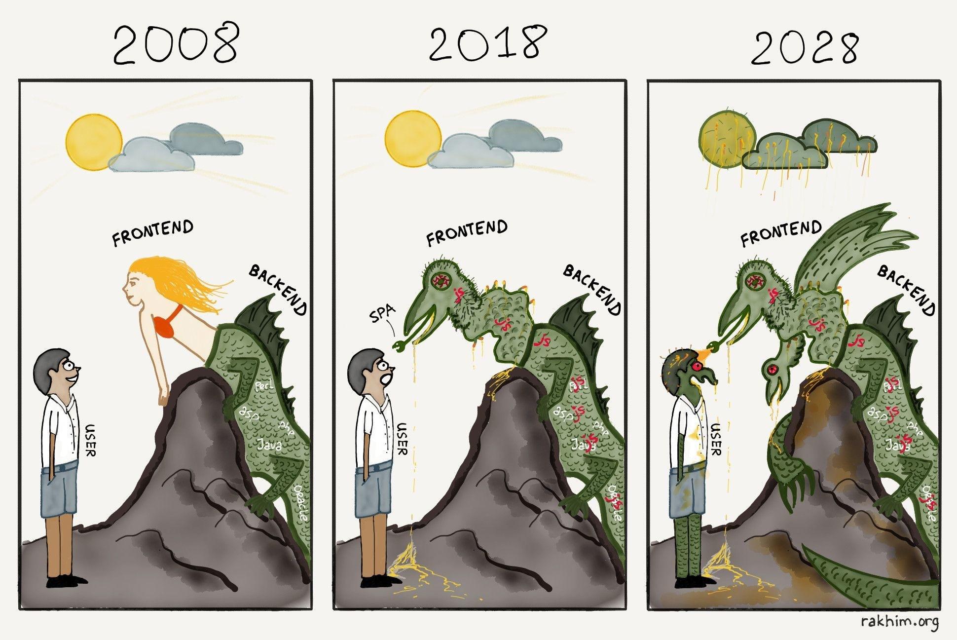 Только вот на последней картинке должно быть уже что угодно кроме js, т.к чистый js уже редко встретишь - скорее ts, dart, wasm и т.д