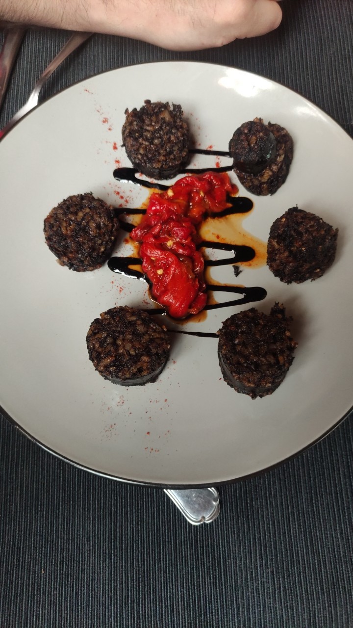 @BelenIRoz Lo ponen porque queda bonito, pero a veces olvidan que la acidez de la reducción de balsámico apaga muchos sabores. Eso sí, la morcilla así sola con los pimientos, de lujo!!!!